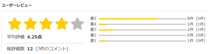 総合 :★★★★★(ユーザーさんご紹介)