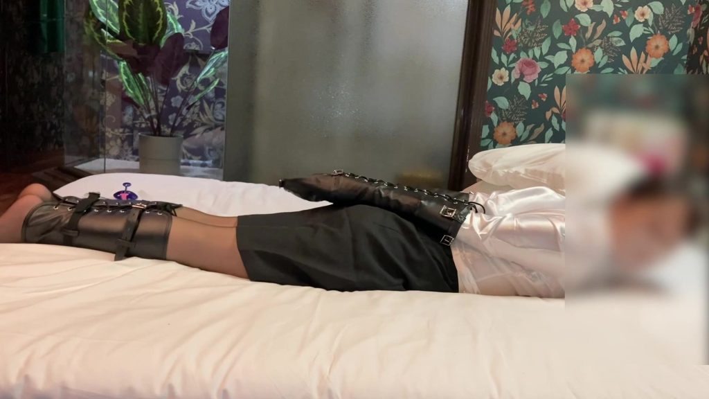 アームバインダー後手拘束で、無慈悲な足裏くすぐり拷問。